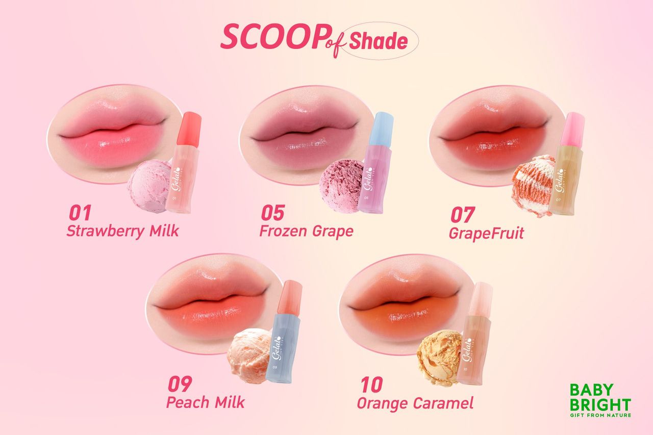ジェラートのように冷んやりとした軽やかなつけ心地で、美しい発色が長時間続くティントリップ「ベイビーブライト ジェラート アイスティント」。