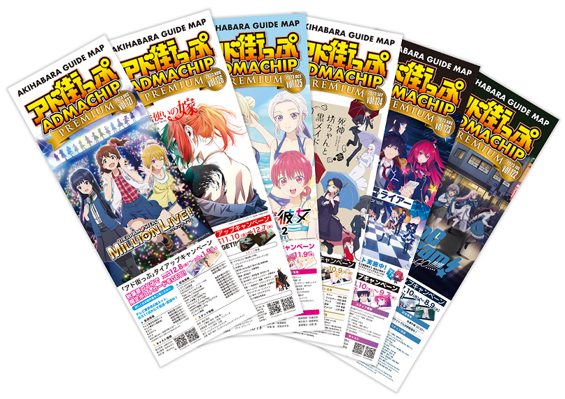 アトレ秋葉原、秋葉原ラジオ会館、AKIBAカルチャーズZONE、ボークス秋葉原ホビー天国2、GiGO、ソフマップ、コトブキヤ、じゃんぱらといった秋葉原の主要スポットをはじめ、秋葉原全域170ヶ所以上にて設置・配布している秋葉原の観光ガイドマップです。現在、ホビーショップ・飲食店舗・アニメ/ゲームコンテンツなどを中心にご紹介する「PREMIUM」版と、メイド・コンセプト喫茶・ライバー情報などを中心にご紹介する「Sweet」版を、毎月10日に計6万部発行しております。