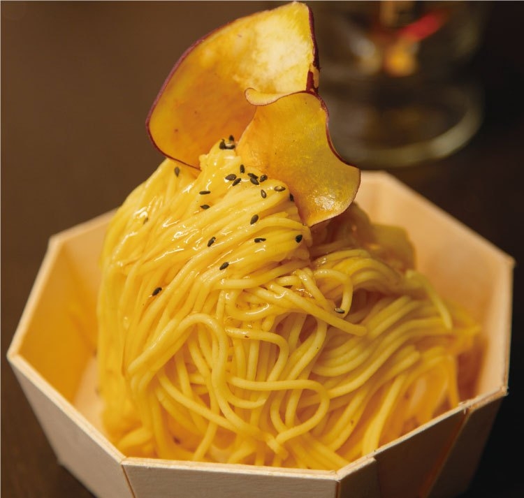 巷で話題の『お芋のモンブラン』こと『芋んぶらん』が食べられるのは当店です!!お芋を練りこんだ特製ペーストを、お客さまの目の前で贅沢に絞り出す、お芋のモンブラン。”絞りたて”だからこそ味わえる美味しさをお楽しみください♡