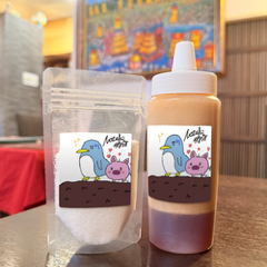 当店の味の決め手は、自家製の「昆布塩」とオリジナル調味料「ひとふり」。