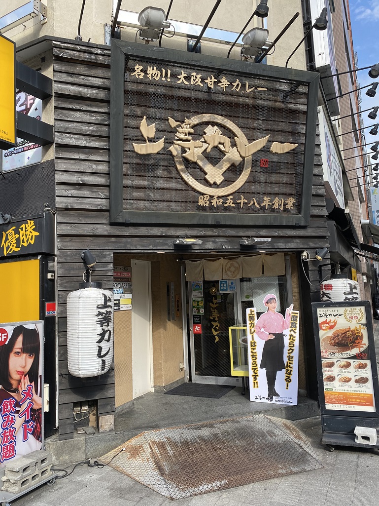 本格手仕込みの"甘辛大阪カレー"を謳い、トッピングなしの通常カレーや名物トンカツカレーをはじめ、チーズカレー、エビフライカレー、エビカレーなど、老若男女に愛されるメニューが揃っています。