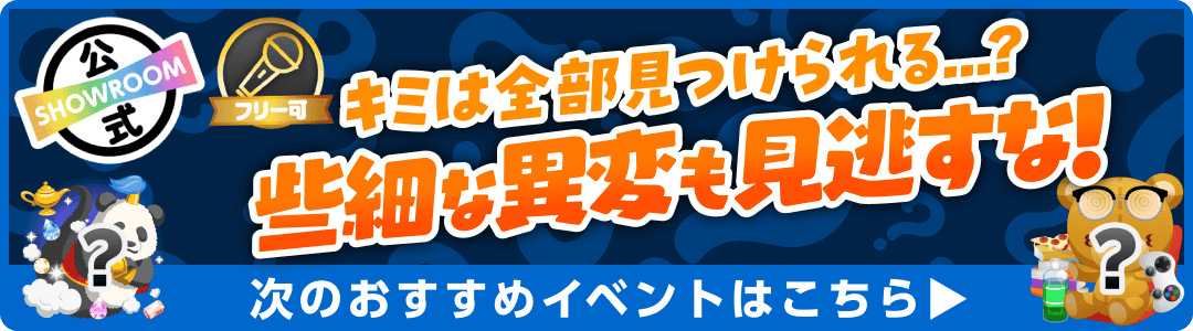 ・本イベントはSHOWROOM株式会社が運営しております。 ・下記注意事項およびSHOWROOM会員規約その他のルールを守って配信しましょう。 ・他者が嫌がるような迷惑行為はしないようにしましょう。 ・審査状況や選考基準に関するお問い合わせには基本的にお答えできかねます。 ・応募・審査通過等によって生じる権利を第三者に譲渡・質入等することはできません。特典の対象は獲得したルームの方のみです。特典を獲得したルームの方以外の方(グループ全体、グループメンバーなど)が特典を実施することは禁止といたします。 ・アバター、ギフティングアイテム等デジタルコンテンツの制作権を獲得された場合、SHOWROOM株式会社が作成する[ガイドライン]・[利用規約]に準じている作品の制作をお願いいたします。これらに違反している場合は、獲得したコンテンツをご利用いただけませんので十分ご注意ください。 ・本注意事項およびSHOWROOM会員規約その他のルールに違反した場合またはその他当社が不適切であると判断した場合は、応募及び結果を無効とし、または取り消す場合があります。 ・応募条件を全て満たさずにエントリーされた場合には、いかなる理由であってもエントリーを取り消し、特典の権利を無効とさせていただく可能性があります。 ・バーチャルライバーに関しては各人の世界観により定義された性別です。 ・イベントを途中離脱された場合には、いかなる理由であっても特典の権利を無効とさせていただきます。該当のライバーにギフティングされたリスナーへの返還、返金等もいたしかねますので、予めご了承ください。 ・金銭、物品、その他プレゼント(チェキ、お礼カードは除く)を視聴者に贈り応援を促進させる行為は禁止します。 ・重複アカウントによる応援は禁止です。重複アカウントによる応援ポイント分は発覚次第、減算を行います。なお、当サービスのセキュリティ上、対応や減算の仕組みの詳細に関しましては個別にご案内を差し上げておりません。予めご了承ください。 ・本アプリ内で開催されるキャンペーン・イベント・コンテスト等にアップル社、グーグル社は一切関係ありません。 ・天災、不慮の事故などのやむを得ない事情により特典履行が行えない場合、特典が変更・補填・中止となることがございます。予めご了承ください。 ・万が一、前項に定める事由による特典履行が変更、中止となった場合、その他本イベントの応援ポイントが取り消しされた場合であっても、SHOWROOM株式会社は当該応援ポイントにかかるデジタルコンテンツまたはShow Gold、現金その他の返還はいたしません。予めご了承ください。 ・イベント終了後に減算されてポイント未達成になった場合、特典は取り消しとさせていただく場合があります。 ・ランキングが関わるイベントの場合、グループメンバー同士(グループアカウント、個人アカウント問わず)、または、イベント参加者の関係者(マネージャー・プロデューサーなどの直接的な利害関係者)の応援はコメントのみ可能とし、有料ギフト・無料ギフトによる応援は禁止とさせていただきます。 ・公式ライバーの方が報酬のある特典を獲得された場合は、所属オーガナイザー・所属事務所等にご確認の上ご対応ください。