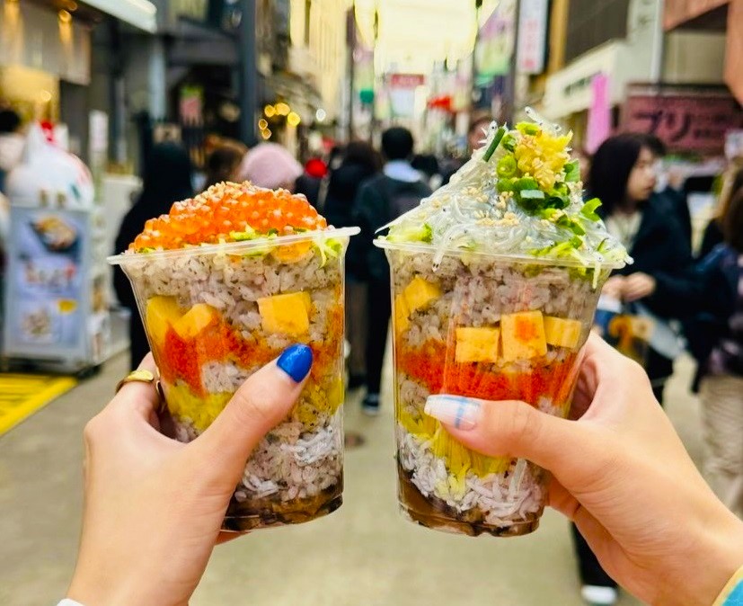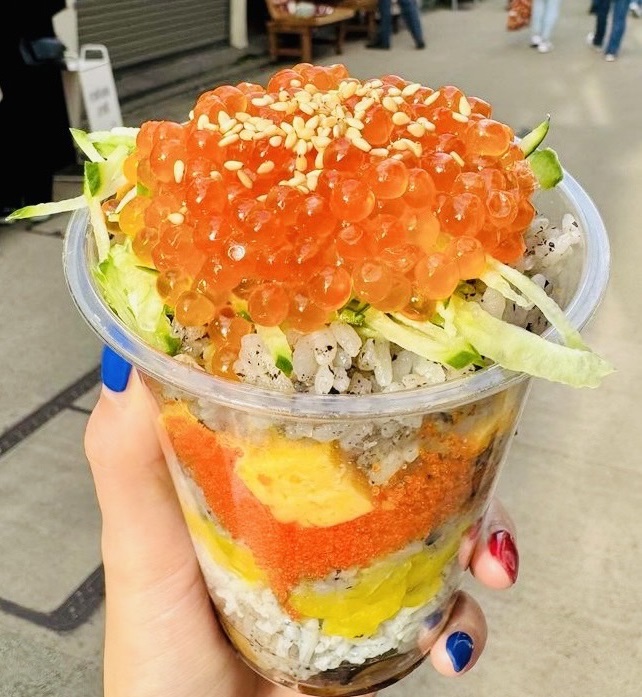 ▼週末には1日1000杯も売れることがある、朝どれ生しらすをたっぷり使った贅沢なカップ寿司「ミルフィーユ寿司」☆