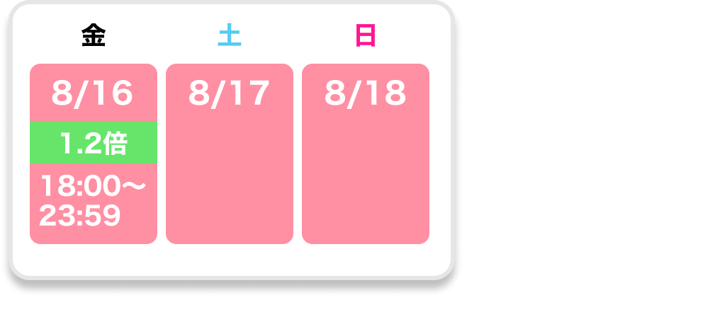 ※対象者には、1.2倍対象日の翌日23:59までにポイント加算いたします。