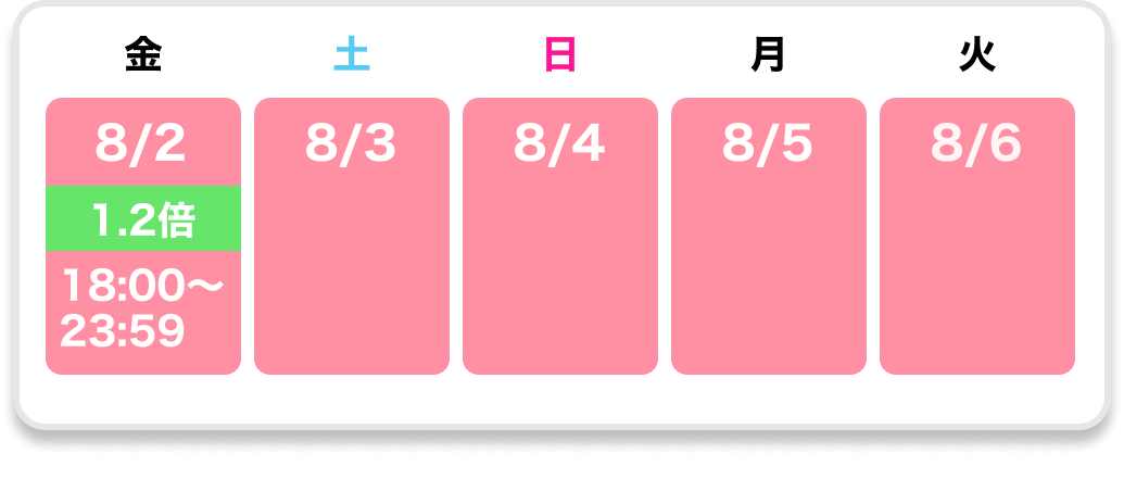 ※対象者には、1.2倍対象日の翌日23:59までにポイント加算いたします。