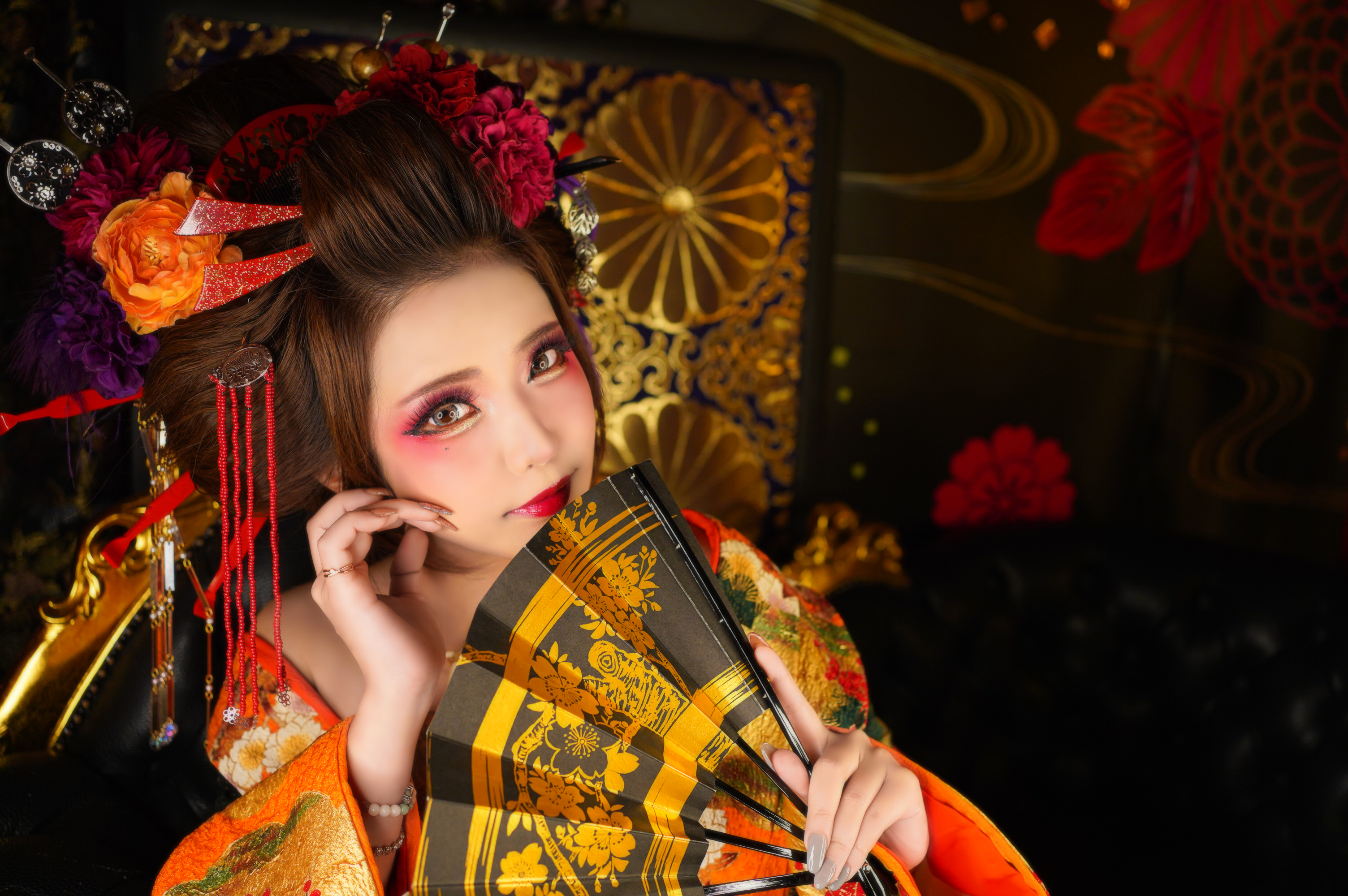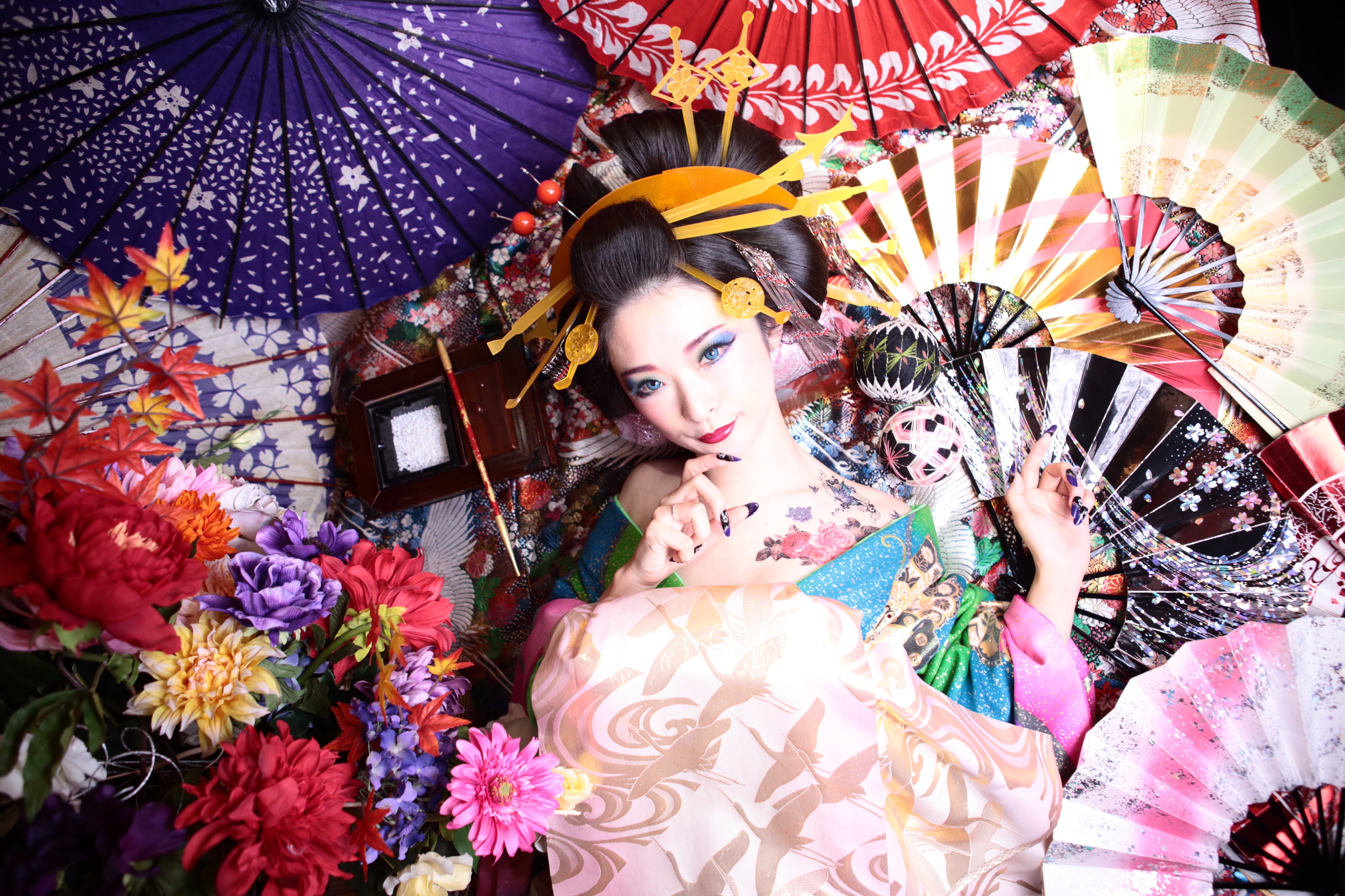 ヘアメイクと花魁衣装、着付けはスタジオでご用意いたします。