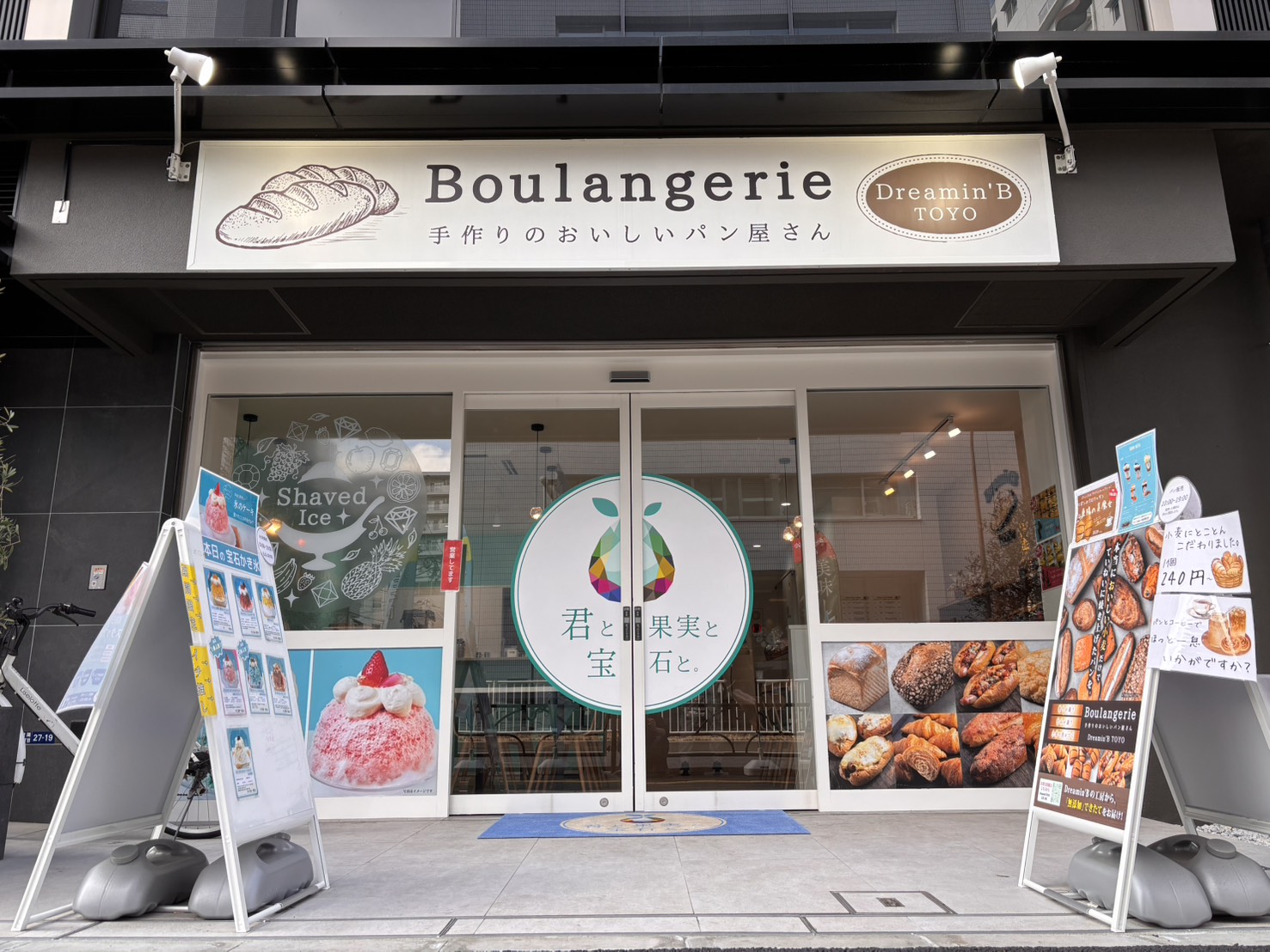 ティファニーブルーを基調とし、艶やかな氷をイメージしたペンダントライトが輝くフォトジェニックな店内では、見た目の華やかさだけでなく、口どけ・余韻・素材の組み合わせまでこだわった、夏でも冬でも食べたくなるかき氷を提供しています。また、店内には江東区住吉にある大人気ブーランジェリー「Dreamin'B」の2号店を併設。柔らかく食べやすいパンからハード系までバラエティに富んだ焼きたてパンが並んでいます♪