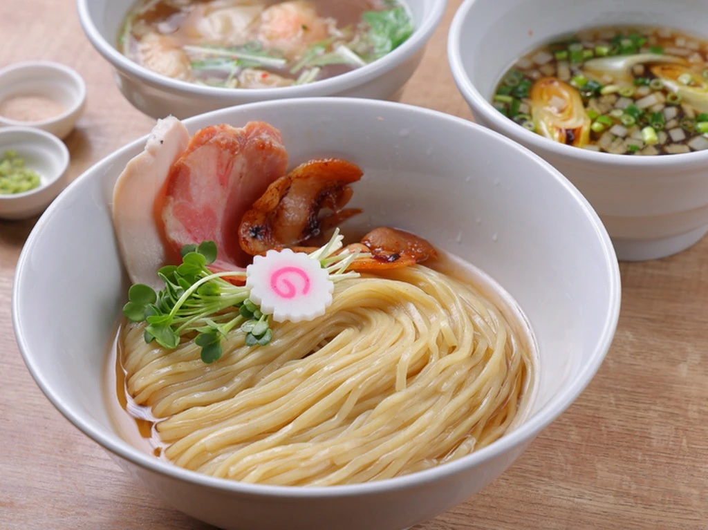「お子様連れでも気軽に利用してほしい」という思いもあり、ゆったりとテーブルが置かれた純和風の店内では、ぎっしり餡が詰まったワンタンに、鶏と豚の3種のチャーシュー、濃厚な半熟煮玉子がのった看板メニュー「特製ワンタン麺」をはじめ、昆布の旨み・椎茸の甘みが広がる「昆布水つけ麺」、山椒香るピリ辛味が食欲をそそる「担々まぜそば」など、風味豊かな和テイストのラーメンを存分に楽しむことができます。
