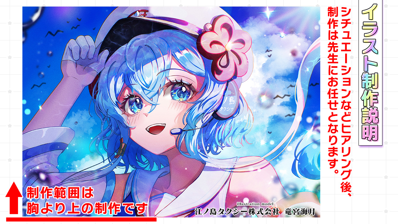 ・2024/01/21(日)23:59までに、イラスト制作に必要な「宣材写真or立ち絵orアバターイラスト」の提出をお願いいたします。(サイズ・ファイル形式は問いません)