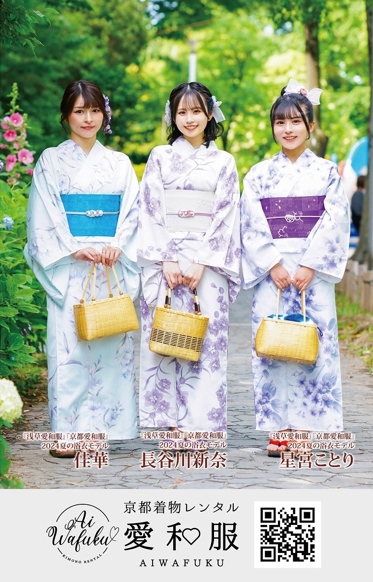 ▼2024年5月に開催された【『浅草愛和服』『京都愛和服』2024夏の浴衣モデルオーディション】にて公式浴衣モデルに就任された長谷川新奈さん、佳華さん、星宮ことりさんのタペストリーデザイン。