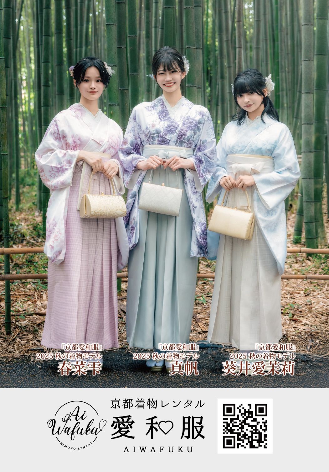 ▼2025年8月に開催された【『京都愛和服』2025 秋の着物モデルオーディション】にて公式着物モデルに就任された真帆さん、春菜雫さん、葵井愛茉莉さんのタペストリーデザイン。