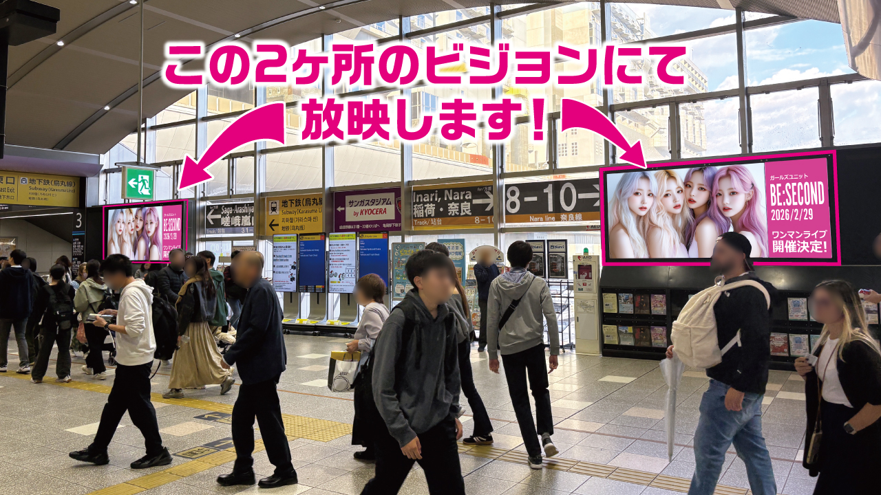 ★『JR京都駅』西口改札内正面マルチビジョン(2ヶ所)にてCM放映権獲得!