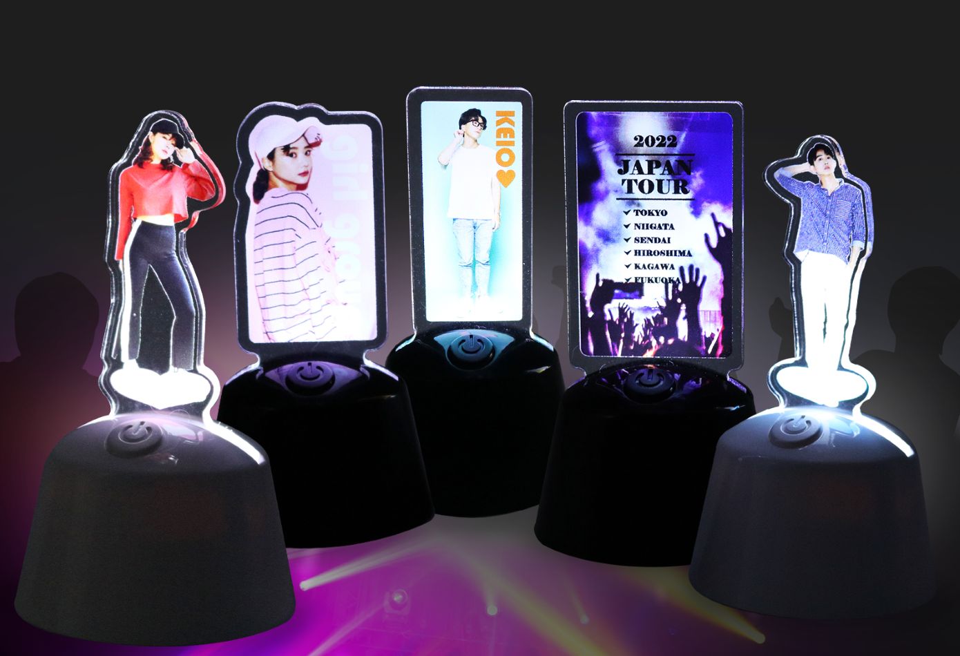 キャラクターグッズやアーティストグッズの定番となっているアクリルスタンドにLEDライトを搭載した『ライトアップ!アクリルスタンドmini』が登場!今回は、このアイテムをあなたのオリジナルで制作・贈呈させていただきます! ランキング1位を獲得された方には、ご自身の写真やイラストが綺麗にプリントされた『ライトアップ!アクリルスタンドmini』を30個、2位の方でも10個を贈呈させていただきます!! この機会にぜひ、従来のアクスタとはひと味違う雰囲気を演出できるプレミアムグッズをつくって、ファンとの絆をよりいっそう深めちゃいましょう!!!
