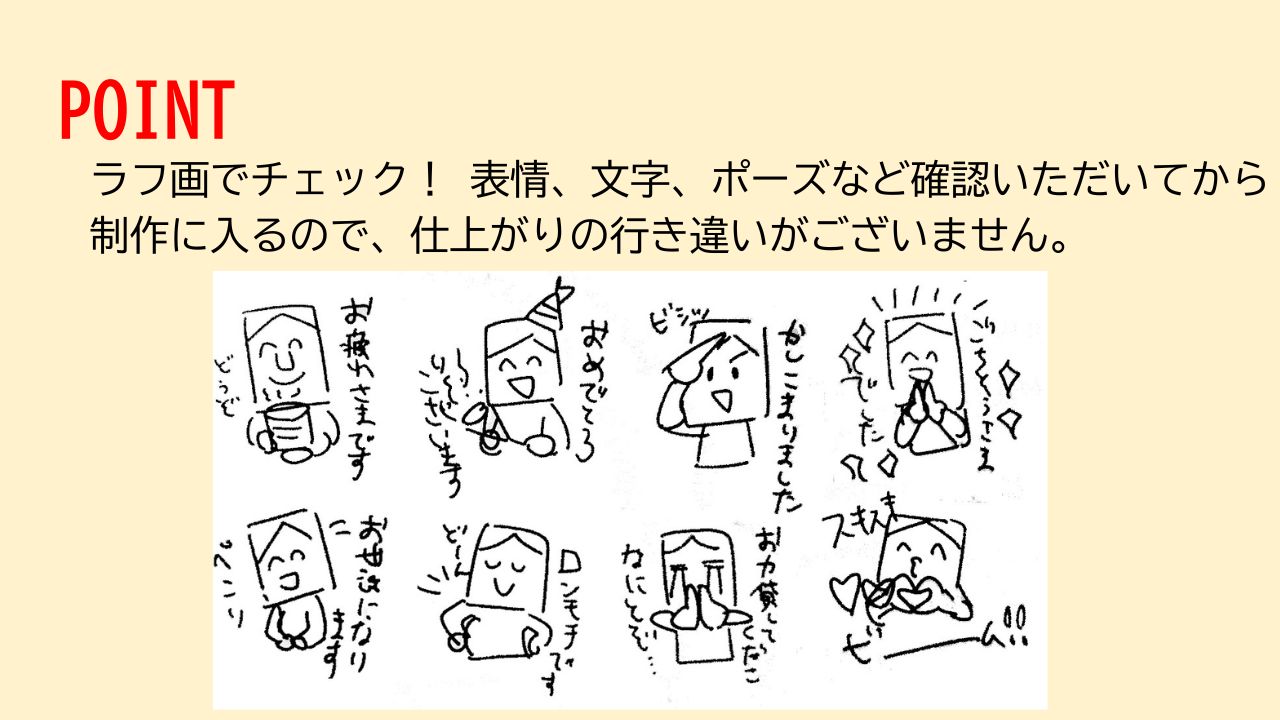 ①イラストのタッチやポーズ、言葉などをヒアリングします。
