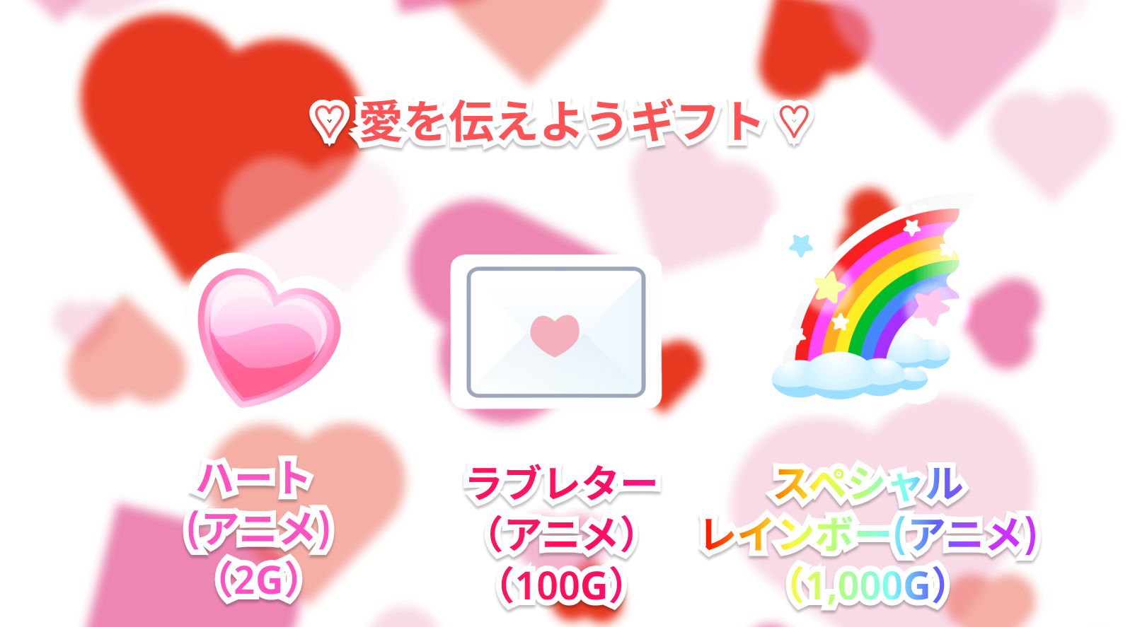 そして、リスナーさんは「愛を伝えようギフト」でいつも以上にライバーさんに愛を伝えましょう♡