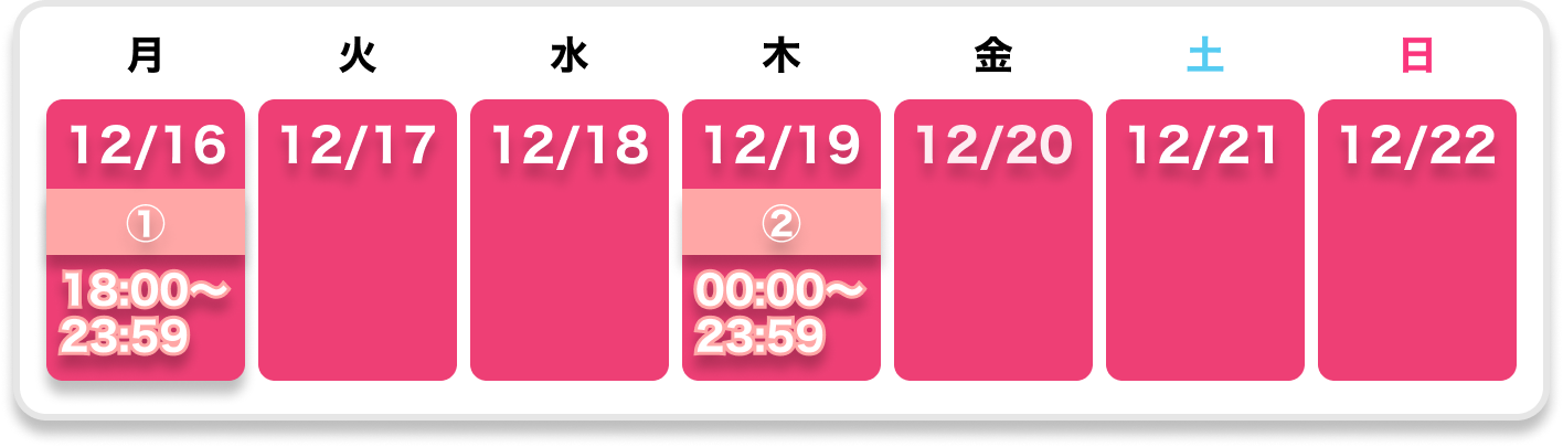 Monday, 16/12/2024 18:00 〜 Sunday, 22/12/2024 21:59