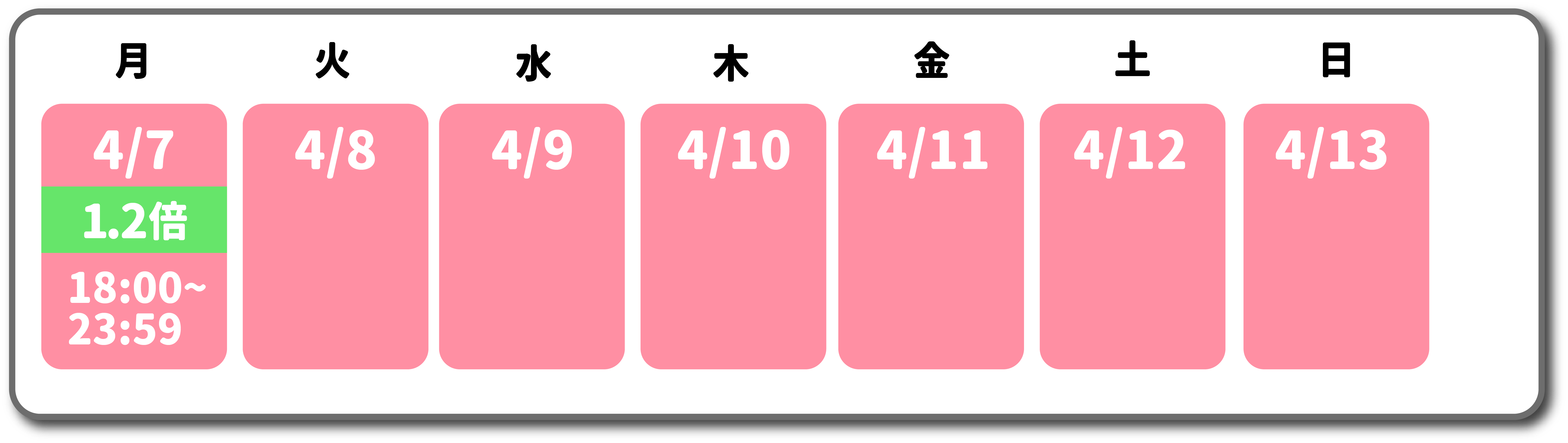 ※対象者には、1.2倍対象日の翌日23:59までにポイント加算いたします。