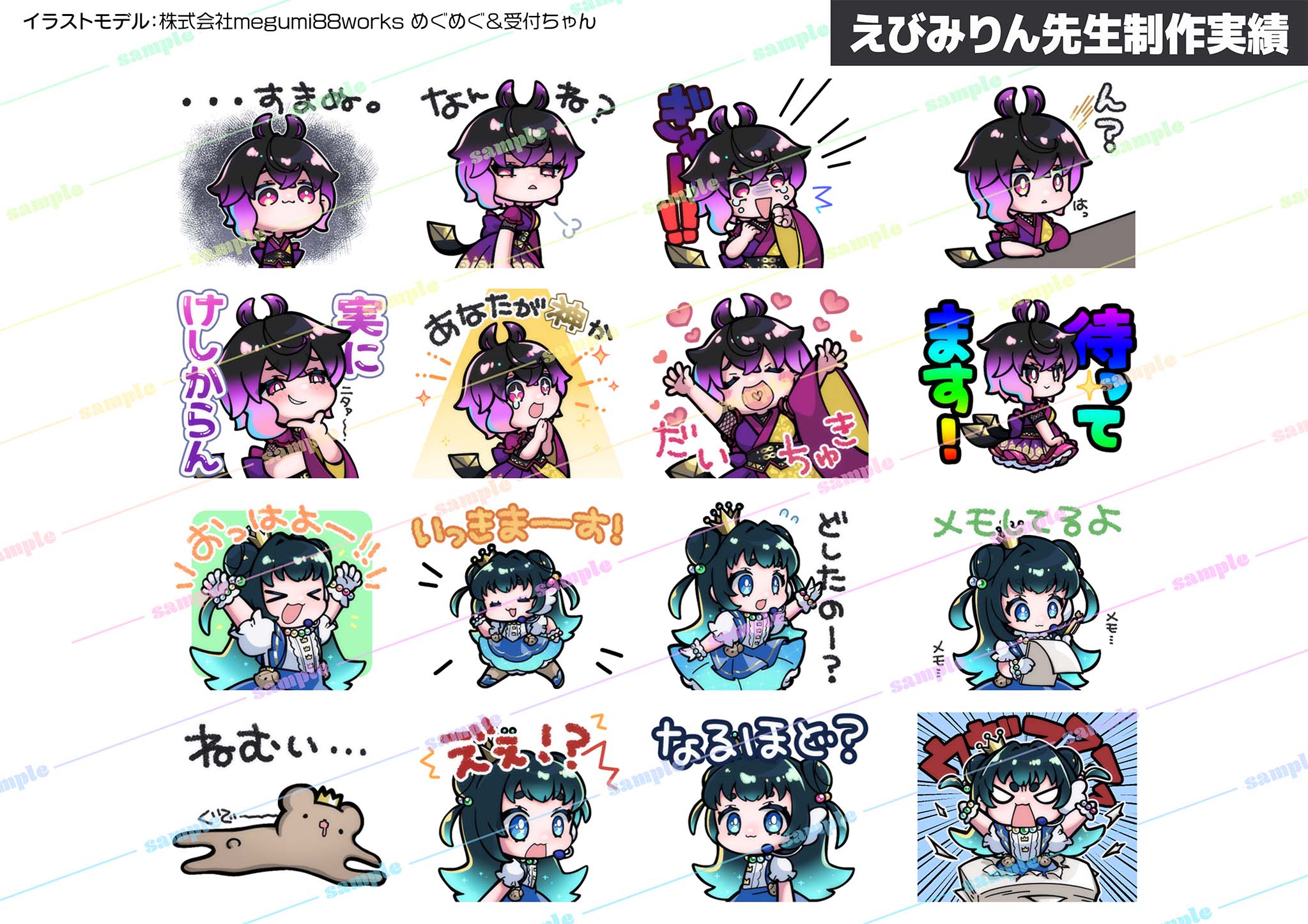 ①えびみりん先生が描く、スタンプイラスト8点制作権獲得!