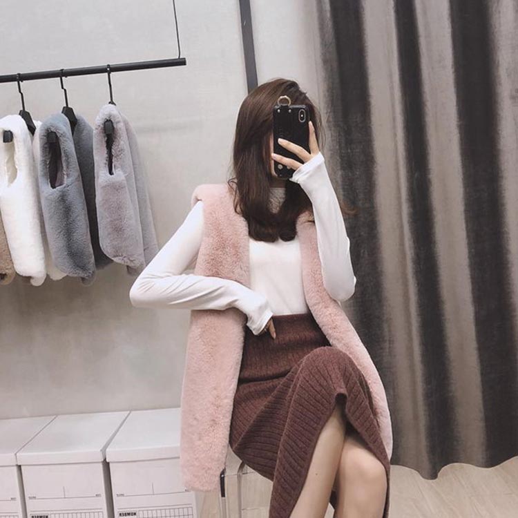 ※ファーベスト(ベージュ)/合皮レザースカート(ブラウン)/デニムワイドパンツ(ブラウン)/ブレザー(ベージュ)のサイズは、S・M・Lよりお選びいただけます。