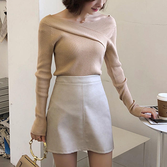 ②オフショルダーニット(ベージュ)