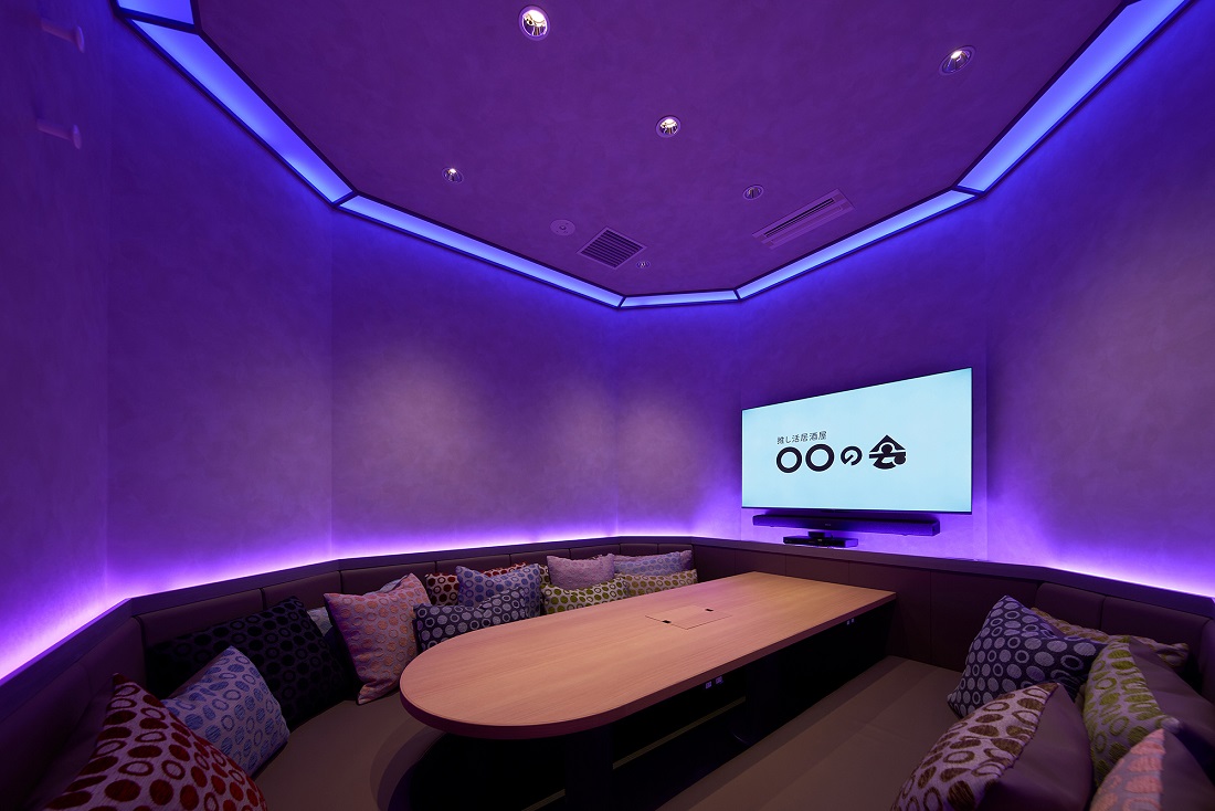 2024年2月、東京・池袋にオープン。全13室に4Kモニター&高音質スピーカー&Blu-rayプレイヤーを完備した、推し活を堪能するための半個室居酒屋です。