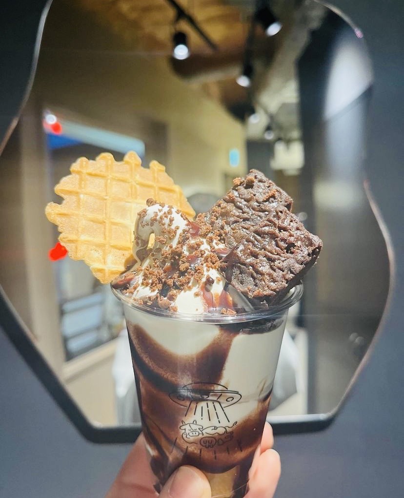 テイクアウトがメインながら、スタンディングカウンターや撮影スポットも用意している同店のメニューは、チョコブラウニーと甘〜いチョコソースがたっぷりかかった「チョコ・マミーレ!」、自慢の濃厚アイスにベストマッチする国産の苺を厳選した「マヨナカイチゴ」、ちょっと懐かしさを感じるカラースプレーがたっぷりかかった「ナツカシノヤーツ」、今夜はまだまだ長そうな方におすすめのコーヒーアイス「マダネナイーヨ」などなど、ネーミングも楽しい個性豊かなラインナップ☆