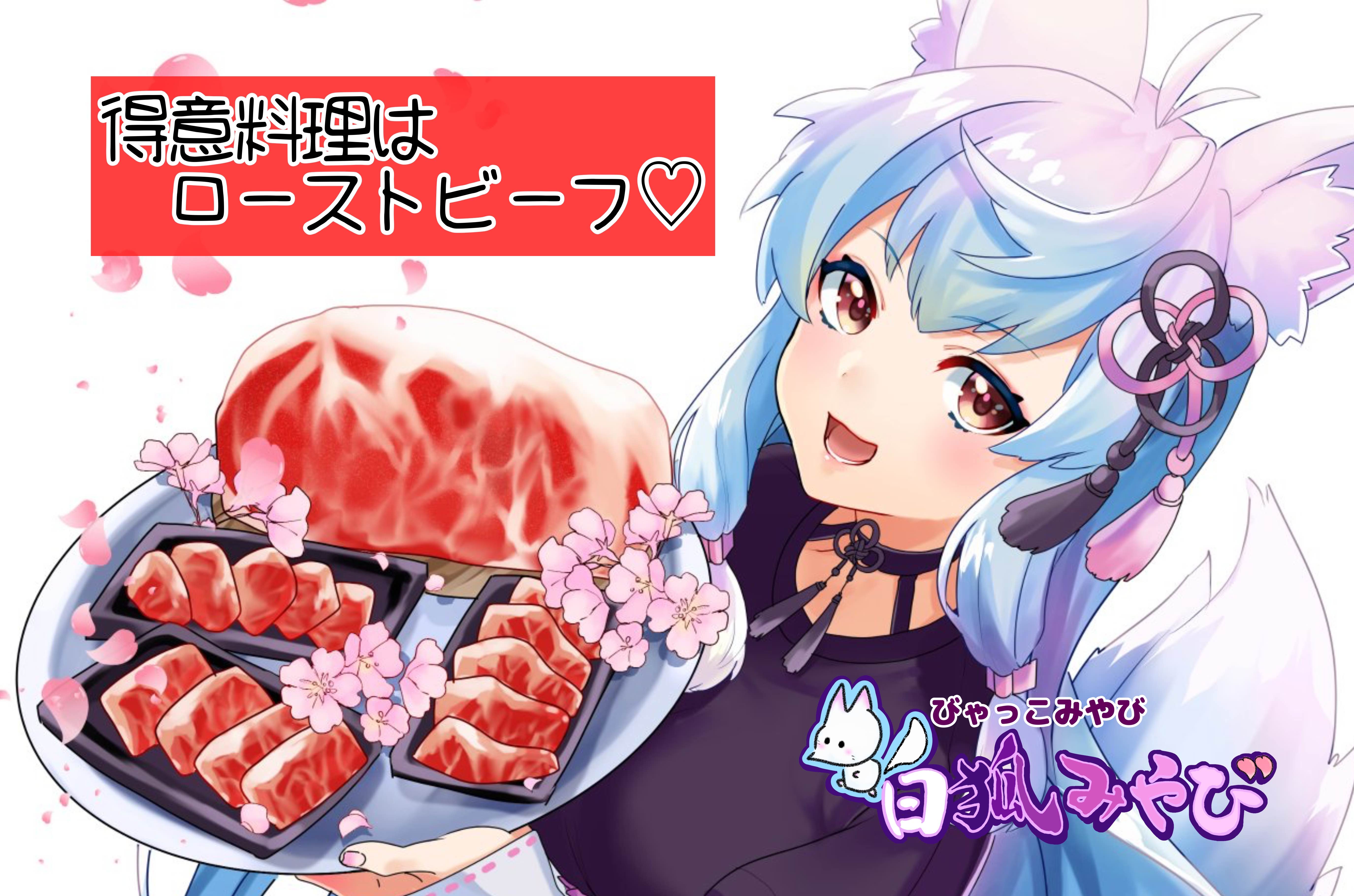 おぼろ月夜にいざなわれ、人間界にやって来た!お狐コンコン白狐のみやびだぉ♡みやびはお肉が大好き♡