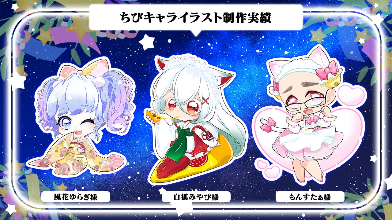 ・イラストはキャラクター1体のみになります。サブキャラなど複数のキャラクターを描くことはできませんので予めご了承ください。