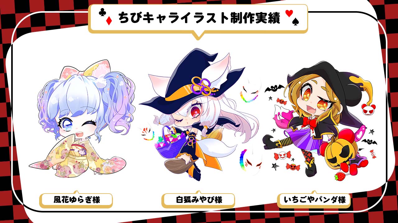 ・イラストはキャラクター1体のみになります。サブキャラなど複数のキャラクターを描くことはできませんので予めご了承ください。