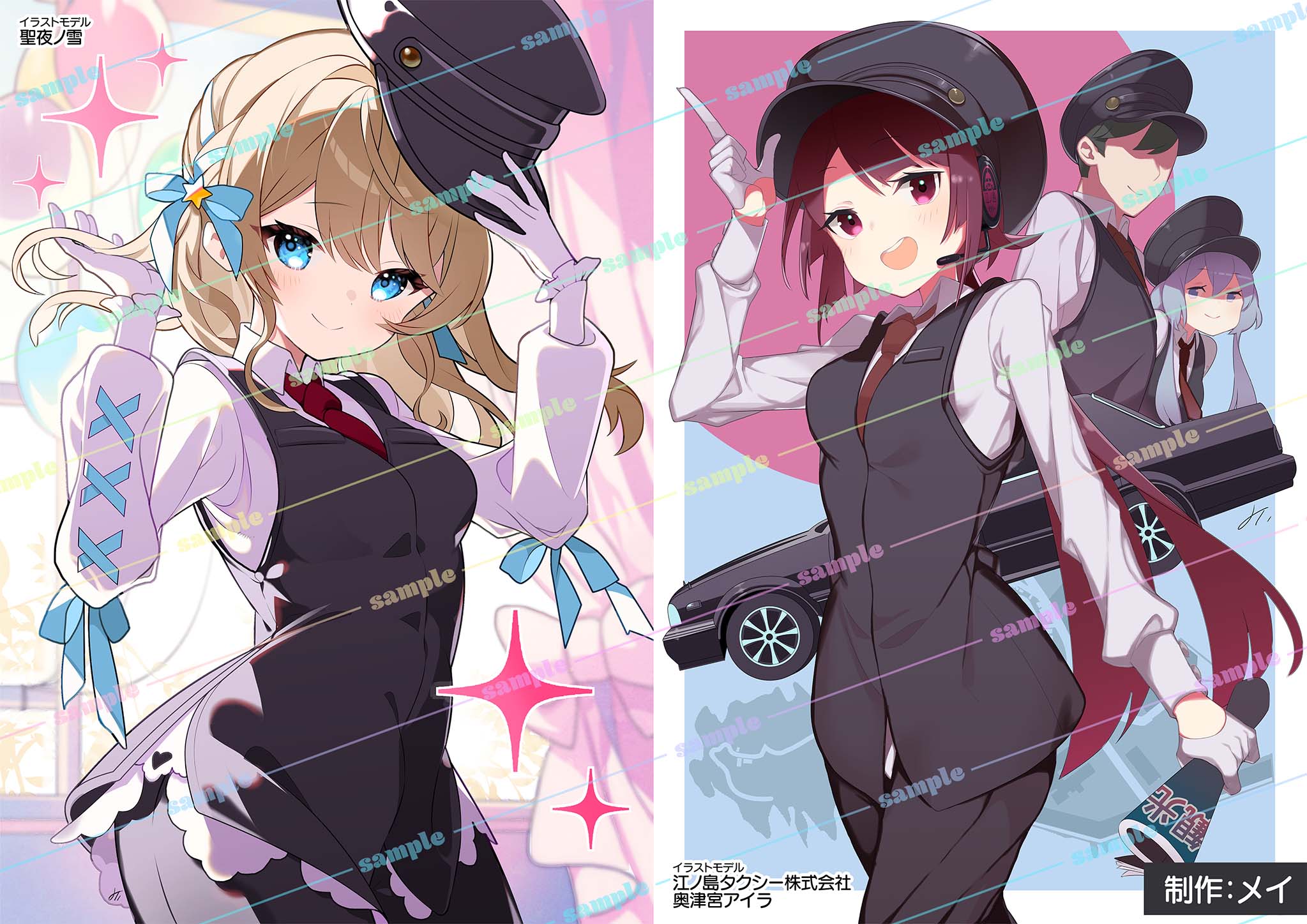 ①メイ先生が描く、タクシー運転手の制服を着たグッズイラスト制作権獲得!
