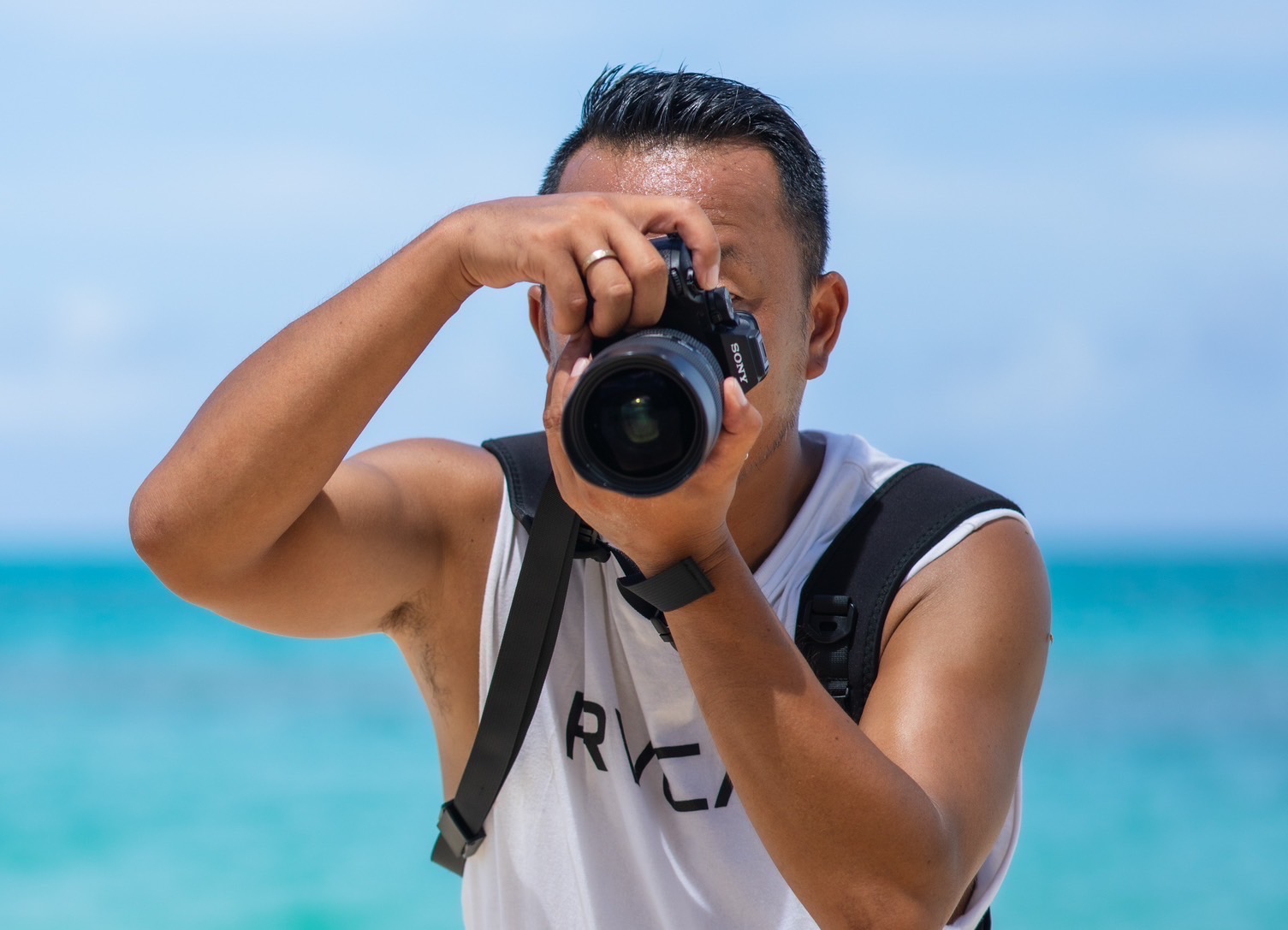 観光スポットや秘境での撮影はもちろん、ウエディングフォトなど幅広いジャンルでお客様の大切な瞬間を切り取り、人気を博している。