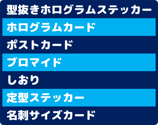 ランキング1~2位の方まで選べるグッズを、ランキング3~4位の希望者は名刺サイズカードを制作!