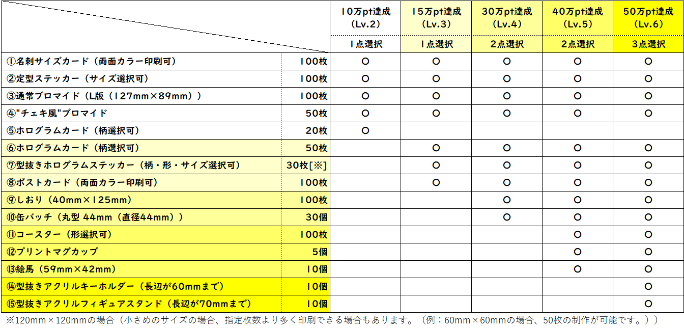 | 6 | 500000 | 50万ポイント達成特典獲得! |