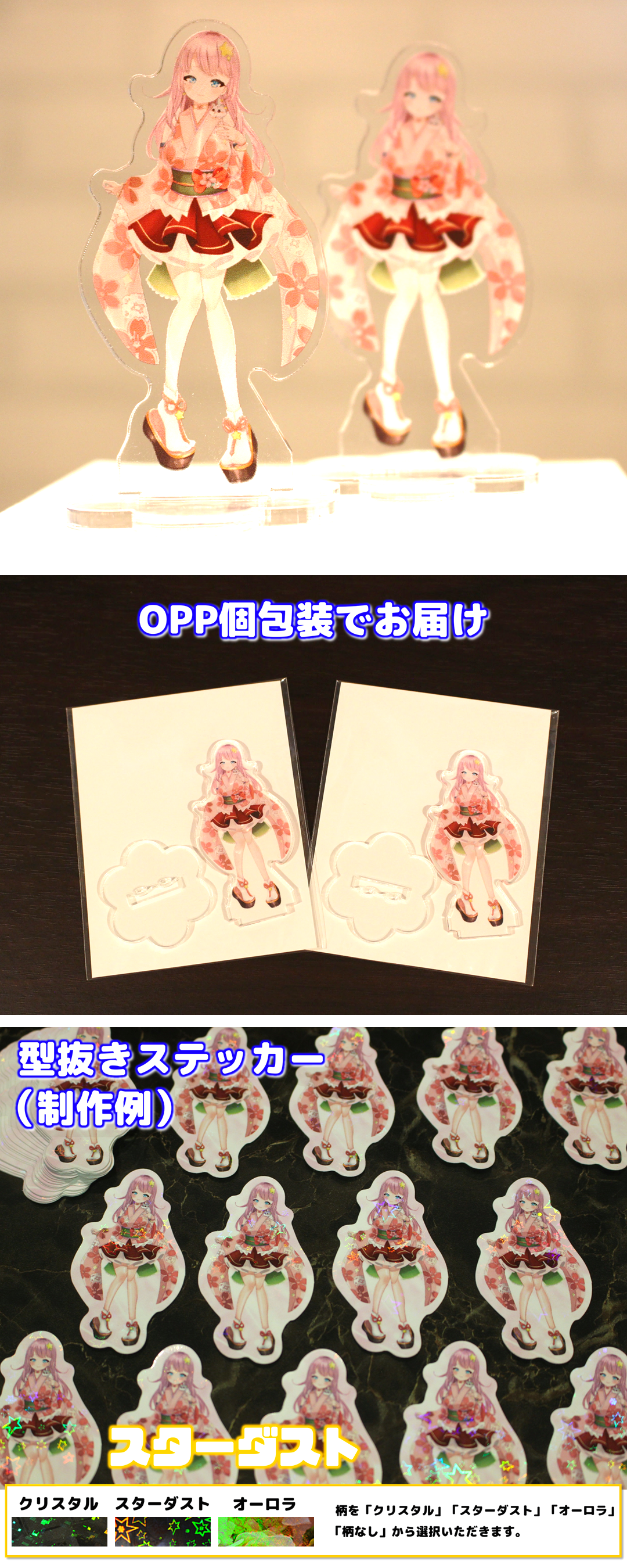 ・提出いただいた画像データ1種類で、アクリルフィギュアスタンド、ステッカーいずれも制作いたします。