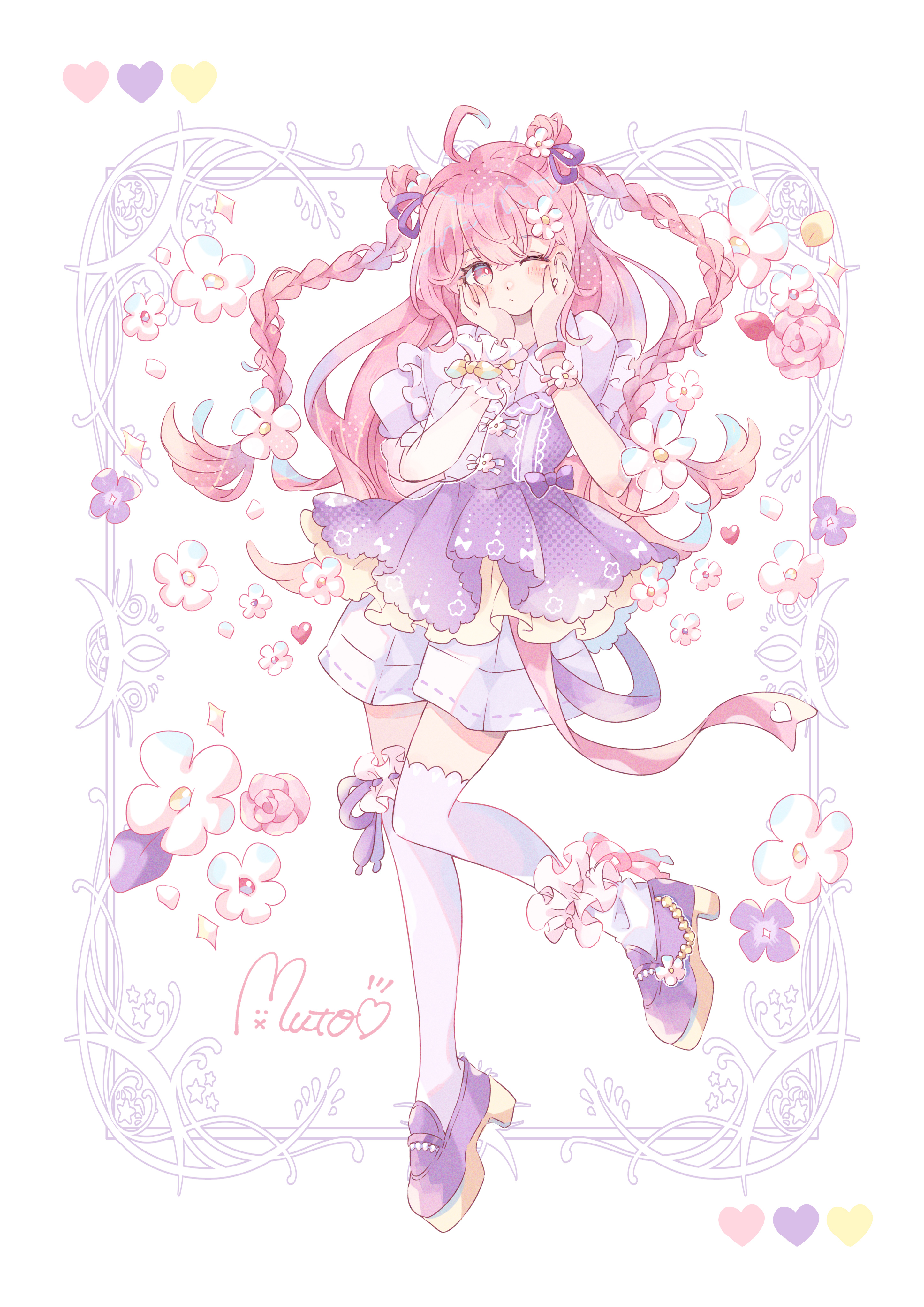 企業や個人のご依頼にて、女の子をメインにイラストを描いており、彩度が高くふんわりしたお菓子のような世界観が特徴。