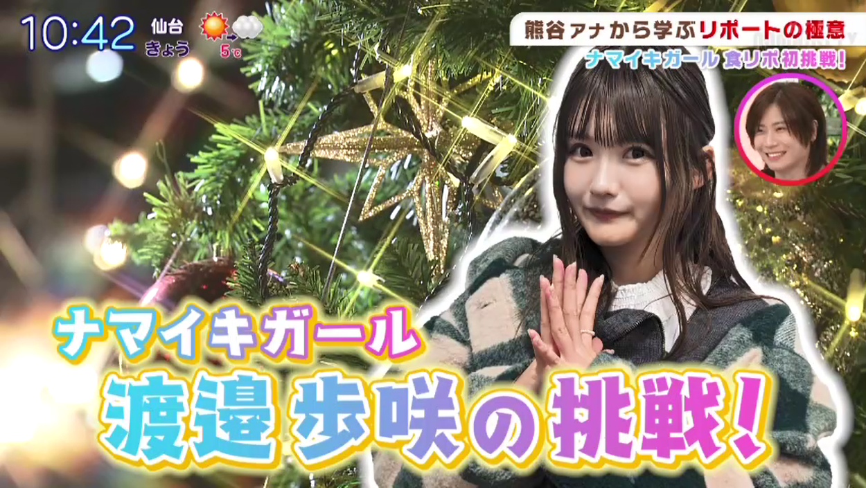khb東日本放送の看板情報番組「突撃!ナマイキ TV」にリポーターなどとして出演し、MCなどの出演者とともに番組を元気に!宮城・東北を元気に!してくれる、新しいマスコット的出演者です。