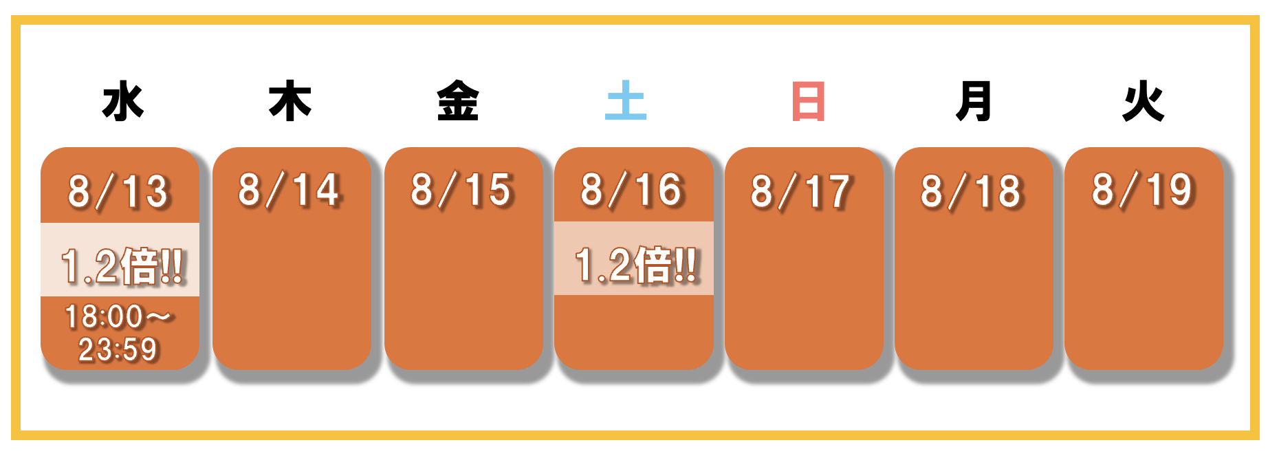 ※対象者には、1.2倍対象日の翌日23:59までにポイント加算いたします。