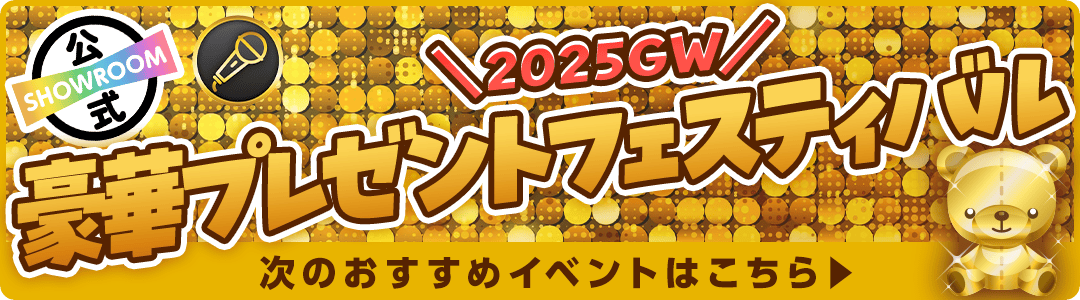 ・本イベントはSHOWROOM株式会社が運営しております。 ・下記注意事項およびSHOWROOM会員規約その他のルールを守って配信しましょう。 ・他者が嫌がるような迷惑行為はしないようにしましょう。 ・審査状況や選考基準に関するお問い合わせには基本的にお答えできかねます。 ・応募・審査通過等によって生じる権利を第三者に譲渡・質入等することはできません。特典の対象は獲得したルームの方のみです。特典を獲得したルームの方以外の方(グループ全体、グループメンバーなど)が特典を実施することは禁止といたします。 ・アバター、ギフティングアイテム等デジタルコンテンツの制作権を獲得された場合、SHOWROOM株式会社が作成する[ガイドライン]・[利用規約]に準じている作品の制作をお願いいたします。これらに違反している場合は、獲得したコンテンツをご利用いただけませんので十分ご注意ください。 ・本注意事項およびSHOWROOM会員規約その他のルールに違反した場合またはその他当社が不適切であると判断した場合は、応募及び結果を無効とし、または取り消す場合があります。 ・応募条件を全て満たさずにエントリーされた場合には、いかなる理由であってもエントリーを取り消し、特典の権利を無効とさせていただく可能性があります。 ・バーチャルライバーに関しては各人の世界観により定義された性別です。 ・イベントを途中離脱された場合には、いかなる理由であっても特典の権利を無効とさせていただきます。該当のライバーにギフティングされたリスナーへの返還、返金等もいたしかねますので、予めご了承ください。 ・金銭、物品、その他プレゼント(チェキ、お礼カードなどは除く)を視聴者に贈り応援を促進させる行為は禁止します。 ・重複アカウントによる応援は禁止です。重複アカウントによる応援ポイント分は発覚次第、減算を行います。なお、当サービスのセキュリティ上、対応や減算の仕組みの詳細に関しましては個別にご案内を差し上げておりません。予めご了承ください。 ・本アプリ内で開催されるキャンペーン・イベント・コンテスト等にアップル社、グーグル社は一切関係ありません。 ・天災、不慮の事故などのやむを得ない事情により特典履行が行えない場合、特典が変更・補填・中止となることがございます。予めご了承ください。 ・万が一、前項に定める事由による特典履行が変更、中止となった場合、その他本イベントの応援ポイントが取り消しされた場合であっても、SHOWROOM株式会社は当該応援ポイントにかかるデジタルコンテンツまたはShow Gold、現金その他の返還はいたしません。予めご了承ください。 ・イベント終了後に減算されてポイント未達成になった場合、特典は取り消しとさせていただく場合があります。 ・ランキングが関わるイベントの場合、グループメンバー同士(グループアカウント、個人アカウント問わず)、または、イベント参加者の関係者(マネージャー・プロデューサーなどの直接的な利害関係者)の応援はコメントのみ可能とし、有料ギフト・無料ギフトによる応援は禁止とさせていただきます。 ・公式ライバーの方が報酬のある特典を獲得された場合は、所属オーガナイザー・所属事務所等にご確認の上ご対応ください。