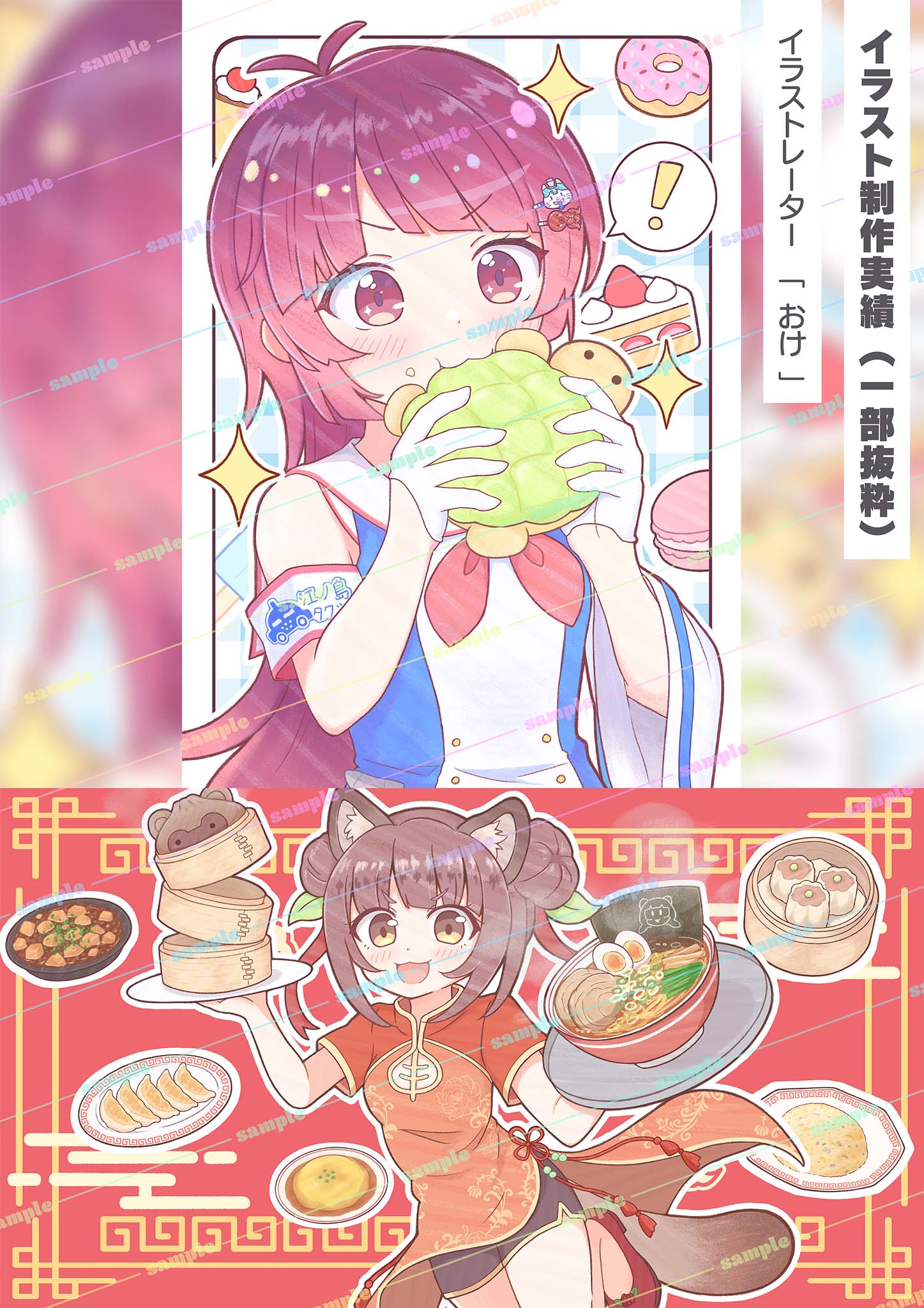 ①おけ先生による、食べ物をほおばる上半身アップのグッズイラスト制作権獲得!