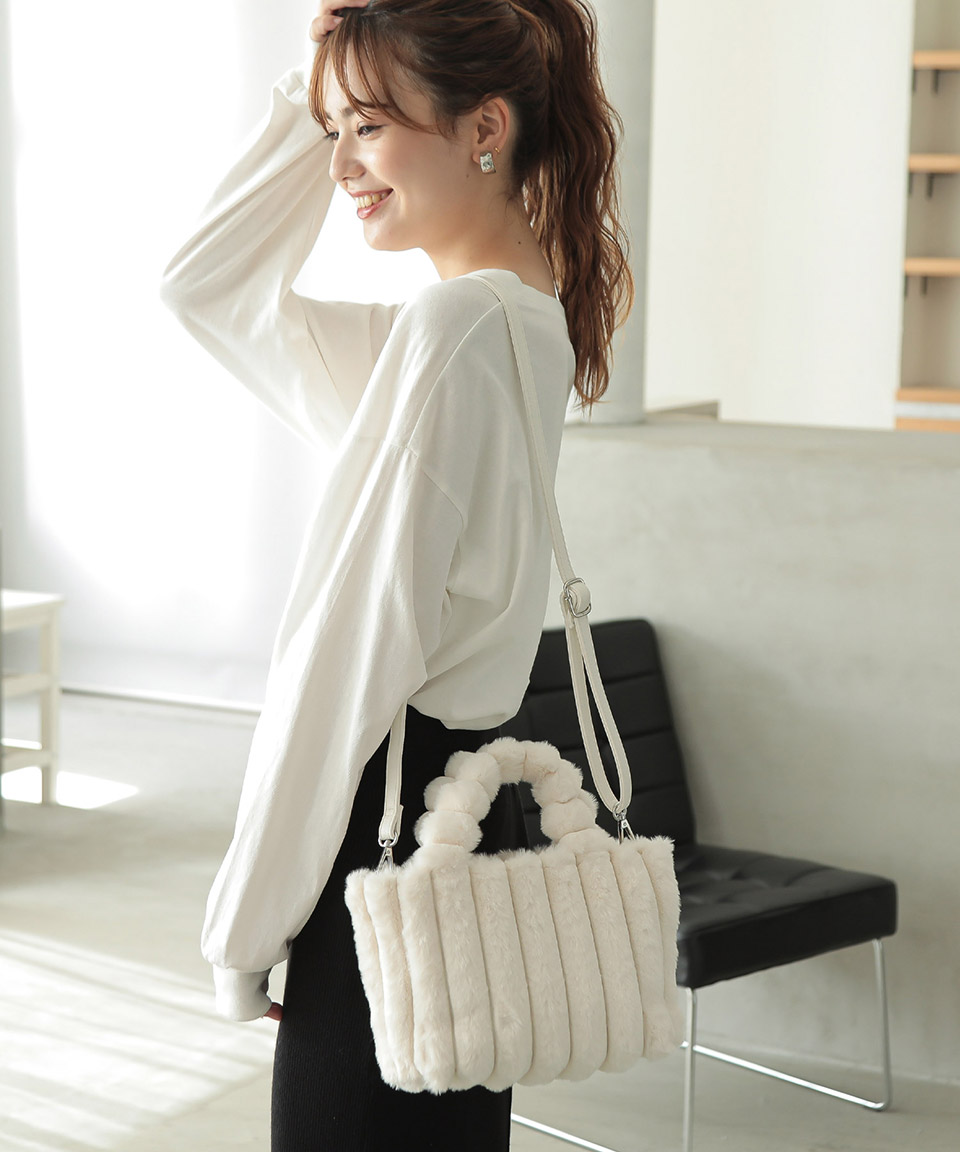 ⑦もこもこファーバッグ(ホワイト)