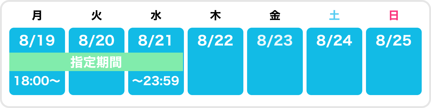 指定期間:2024/8/19(月)18:00〜2024/8/21(水)23:59