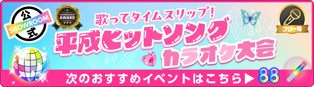 ・本イベントはSHOWROOM株式会社が運営しております。 ・下記注意事項およびSHOWROOM会員規約その他のルールを守って配信しましょう。 ・他者が嫌がるような迷惑行為はしないようにしましょう。 ・審査状況や選考基準に関するお問い合わせには基本的にお答えできかねます。 ・応募・審査通過等によって生じる権利を第三者に譲渡・質入等することはできません。特典の対象は獲得したルームの方のみです。特典を獲得したルームの方以外の方(グループ全体、グループメンバーなど)が特典を実施することは禁止といたします。 ・アバター、ギフティングアイテム等デジタルコンテンツの制作権を獲得された場合、SHOWROOM株式会社が作成する[ガイドライン]・[利用規約]に準じている作品の制作をお願いいたします。これらに違反している場合は、獲得したコンテンツをご利用いただけませんので十分ご注意ください。 ・本注意事項およびSHOWROOM会員規約その他のルールに違反した場合またはその他当社が不適切であると判断した場合は、応募及び結果を無効とし、または取り消す場合があります。 ・応募条件を全て満たさずにエントリーされた場合には、いかなる理由であってもエントリーを取り消し、特典の権利を無効とさせていただく可能性があります。 ・バーチャルライバーに関しては各人の世界観により定義された性別です。 ・イベントを途中離脱された場合には、いかなる理由であっても特典の権利を無効とさせていただきます。該当のライバーにギフティングされたリスナーへの返還、返金等もいたしかねますので、予めご了承ください。 ・金銭、物品、その他プレゼント(チェキ、お礼カードは除く)を視聴者に贈り応援を促進させる行為は禁止します。 ・重複アカウントによる応援は禁止です。重複アカウントによる応援ポイント分は発覚次第、減算を行います。なお、当サービスのセキュリティ上、対応や減算の仕組みの詳細に関しましては個別にご案内を差し上げておりません。予めご了承ください。 ・本アプリ内で開催されるキャンペーン・イベント・コンテスト等にアップル社、グーグル社は一切関係ありません。 ・天災、不慮の事故などのやむを得ない事情により特典履行が行えない場合、特典が変更・補填・中止となることがございます。予めご了承ください。 ・万が一、前項に定める事由による特典履行が変更、中止となった場合、その他本イベントの応援ポイントが取り消しされた場合であっても、SHOWROOM株式会社は当該応援ポイントにかかるデジタルコンテンツまたはShow Gold、現金その他の返還はいたしません。予めご了承ください。 ・イベント終了後に減算されてポイント未達成になった場合、特典は取り消しとさせていただく場合があります。 ・ランキングが関わるイベントの場合、グループメンバー同士(グループアカウント、個人アカウント問わず)、または、イベント参加者の関係者(マネージャー・プロデューサーなどの直接的な利害関係者)の応援はコメントのみ可能とし、有料ギフト・無料ギフトによる応援は禁止とさせていただきます。 ・公式ライバーの方が報酬のある特典を獲得された場合は、所属オーガナイザー・所属事務所等にご確認の上ご対応ください。