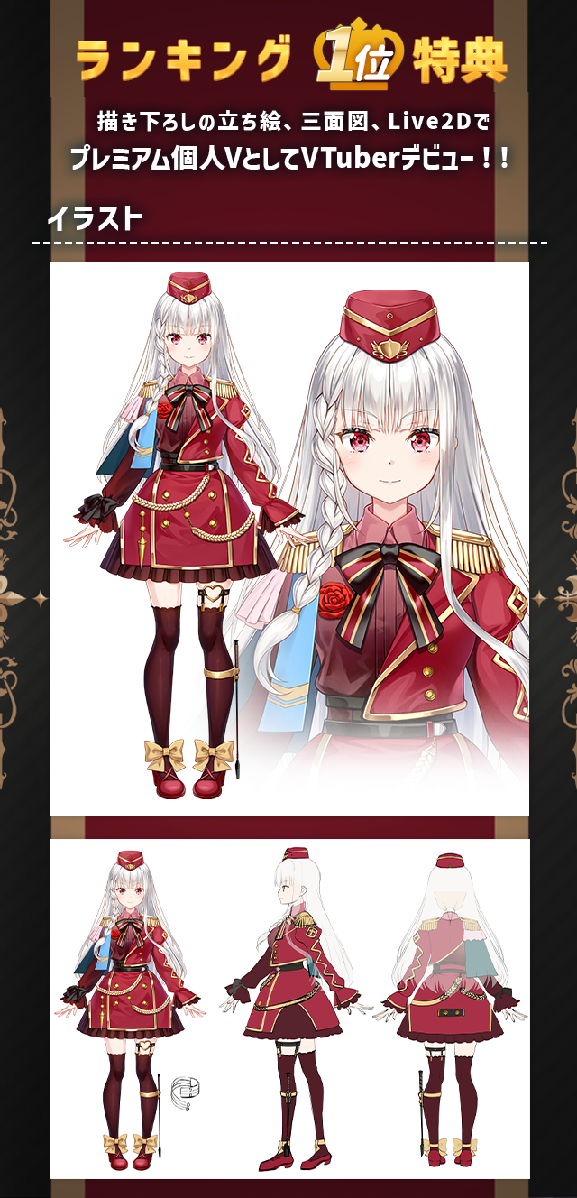 本イベントでランキング1位になった方は、藤真拓哉氏描き下ろしの立ち絵、三面図で個人VTuberとして活動をスタートできます!
