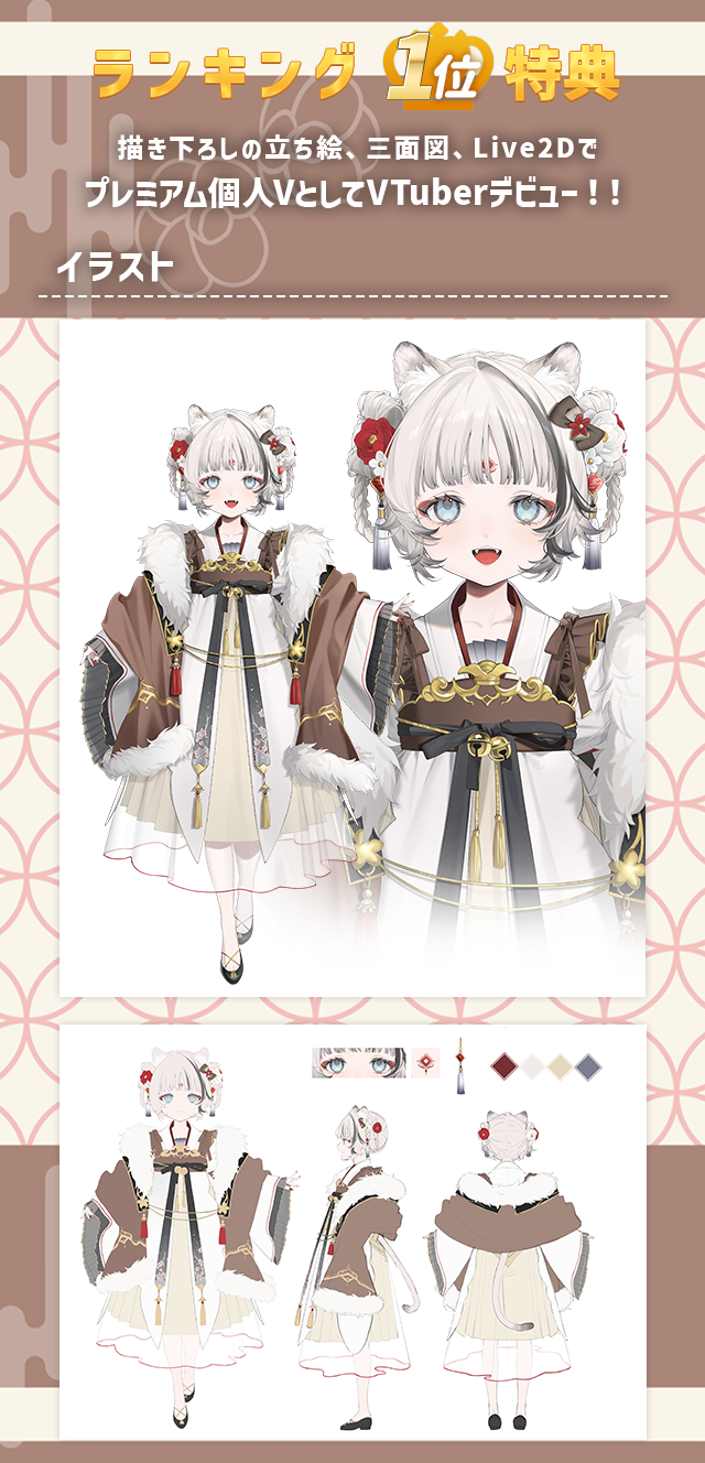 本イベントでランキング1位になった方は、橘せら氏描き下ろしの立ち絵、三面図で個人VTuberとして活動をスタートできます!