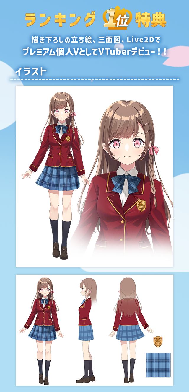 本イベントでランキング1位になった方は、三村ざじゃ氏描き下ろしの立ち絵、三面図で個人VTuberとして活動をスタートできます!