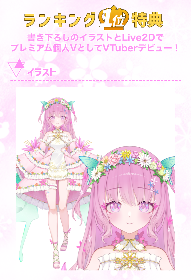 プレミアム個人Vオーディション~花冠ノ精Girls~が開催! 個人VTuberとして活動したい方向けに株式会社DELTA-Vがバーチャルの姿をご用意致します! ランキング1位になった方は、「Y」氏描き下ろしの立ち絵で個人VTuberとして活動をスタートできます!