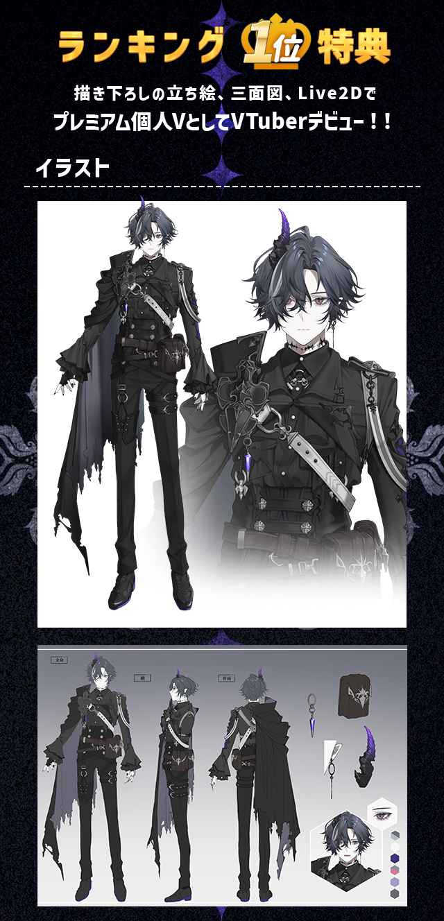 本イベントでランキング1位になった方は、橘せら氏描き下ろしの立ち絵、三面図で個人VTuberとして活動をスタートできます!