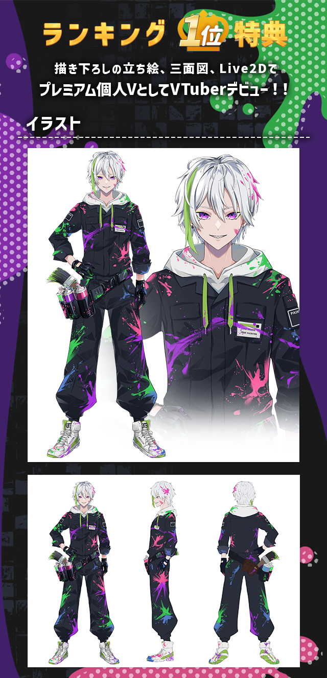 本イベントでランキング1位になった方は、Y氏描き下ろしの立ち絵、三面図で個人VTuberとして活動をスタートできます!