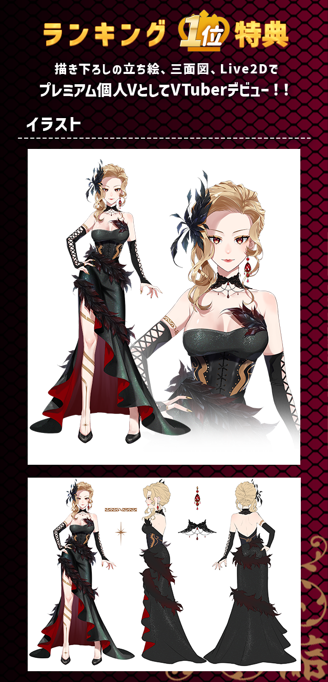 プレミアム個人Vオーディション~黒蛇淑女~が開催! 個人VTuberとして活動したい方向けに株式会社DELTA-Vがバーチャルの姿をご用意致します! ランキング1位になった方は、つくみ氏描き下ろしの立ち絵、三面図で個人VTuberとして活動をスタートできます!