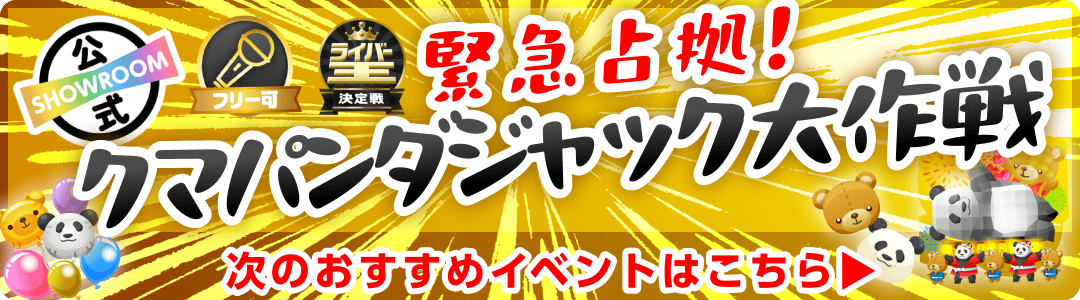 ・本イベントはSHOWROOM株式会社が運営しております。 ・下記注意事項およびSHOWROOM会員規約その他のルールを守って配信しましょう。 ・他者が嫌がるような迷惑行為はしないようにしましょう。 ・審査状況や選考基準に関するお問い合わせには基本的にお答えできかねます。 ・応募・審査通過等によって生じる権利を第三者に譲渡・質入等することはできません。特典の対象は獲得したルームの方のみです。特典を獲得したルームの方以外の方(グループ全体、グループメンバーなど)が特典を実施することは禁止といたします。 ・アバター、ギフティングアイテム等デジタルコンテンツの制作権を獲得された場合、SHOWROOM株式会社が作成する[ガイドライン]・[利用規約]に準じている作品の制作をお願いいたします。これらに違反している場合は、獲得したコンテンツをご利用いただけませんので十分ご注意ください。 ・本注意事項およびSHOWROOM会員規約その他のルールに違反した場合またはその他当社が不適切であると判断した場合は、応募及び結果を無効とし、または取り消す場合があります。 ・応募条件を全て満たさずにエントリーされた場合には、いかなる理由であってもエントリーを取り消し、特典の権利を無効とさせていただく可能性があります。 ・バーチャルライバーに関しては各人の世界観により定義された性別です。 ・イベントを途中離脱された場合には、いかなる理由であっても特典の権利を無効とさせていただきます。該当のライバーにギフティングされたリスナーへの返還、返金等もいたしかねますので、予めご了承ください。 ・金銭、物品、その他プレゼント(チェキ、お礼カードは除く)を視聴者に贈り応援を促進させる行為は禁止します。 ・重複アカウントによる応援は禁止です。重複アカウントによる応援ポイント分は発覚次第、減算を行います。なお、当サービスのセキュリティ上、対応や減算の仕組みの詳細に関しましては個別にご案内を差し上げておりません。予めご了承ください。 ・本アプリ内で開催されるキャンペーン・イベント・コンテスト等にアップル社、グーグル社は一切関係ありません。 ・天災、不慮の事故などのやむを得ない事情により特典履行が行えない場合、特典が変更・補填・中止となることがございます。予めご了承ください。 ・万が一、前項に定める事由による特典履行が変更、中止となった場合、その他本イベントの応援ポイントが取り消しされた場合であっても、SHOWROOM株式会社は当該応援ポイントにかかるデジタルコンテンツまたはShow Gold、現金その他の返還はいたしません。予めご了承ください。 ・イベント終了後に減算されてポイント未達成になった場合、特典は取り消しとさせていただく場合があります。 ・ランキングが関わるイベントの場合、グループメンバー同士(グループアカウント、個人アカウント問わず)、または、イベント参加者の関係者(マネージャー・プロデューサーなどの直接的な利害関係者)の応援はコメントのみ可能とし、有料ギフト・無料ギフトによる応援は禁止とさせていただきます。 ・公式ライバーの方が報酬のある特典を獲得された場合は、所属オーガナイザー・所属事務所等にご確認の上ご対応ください。